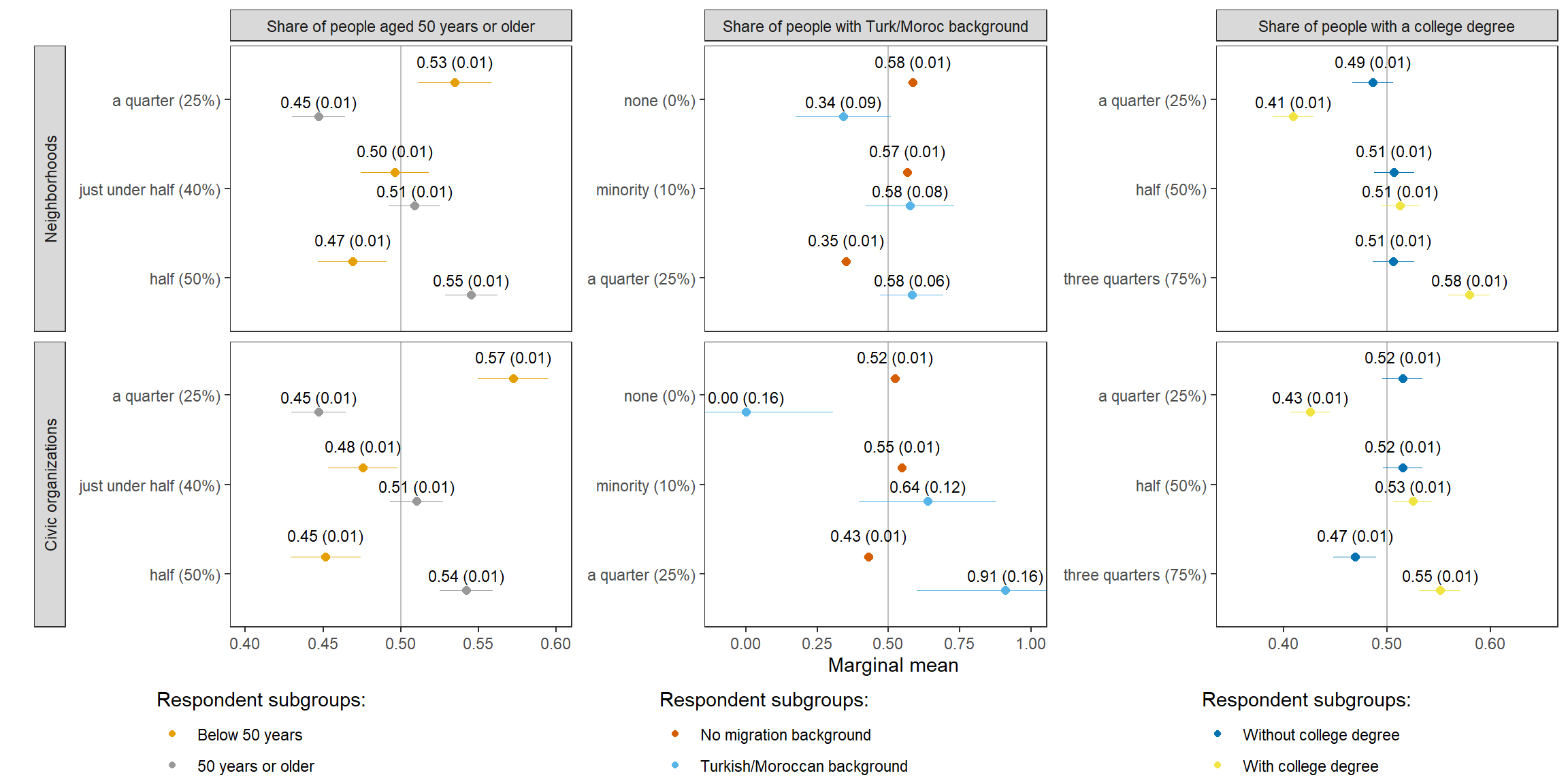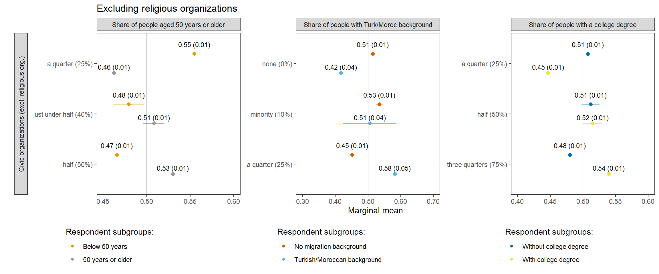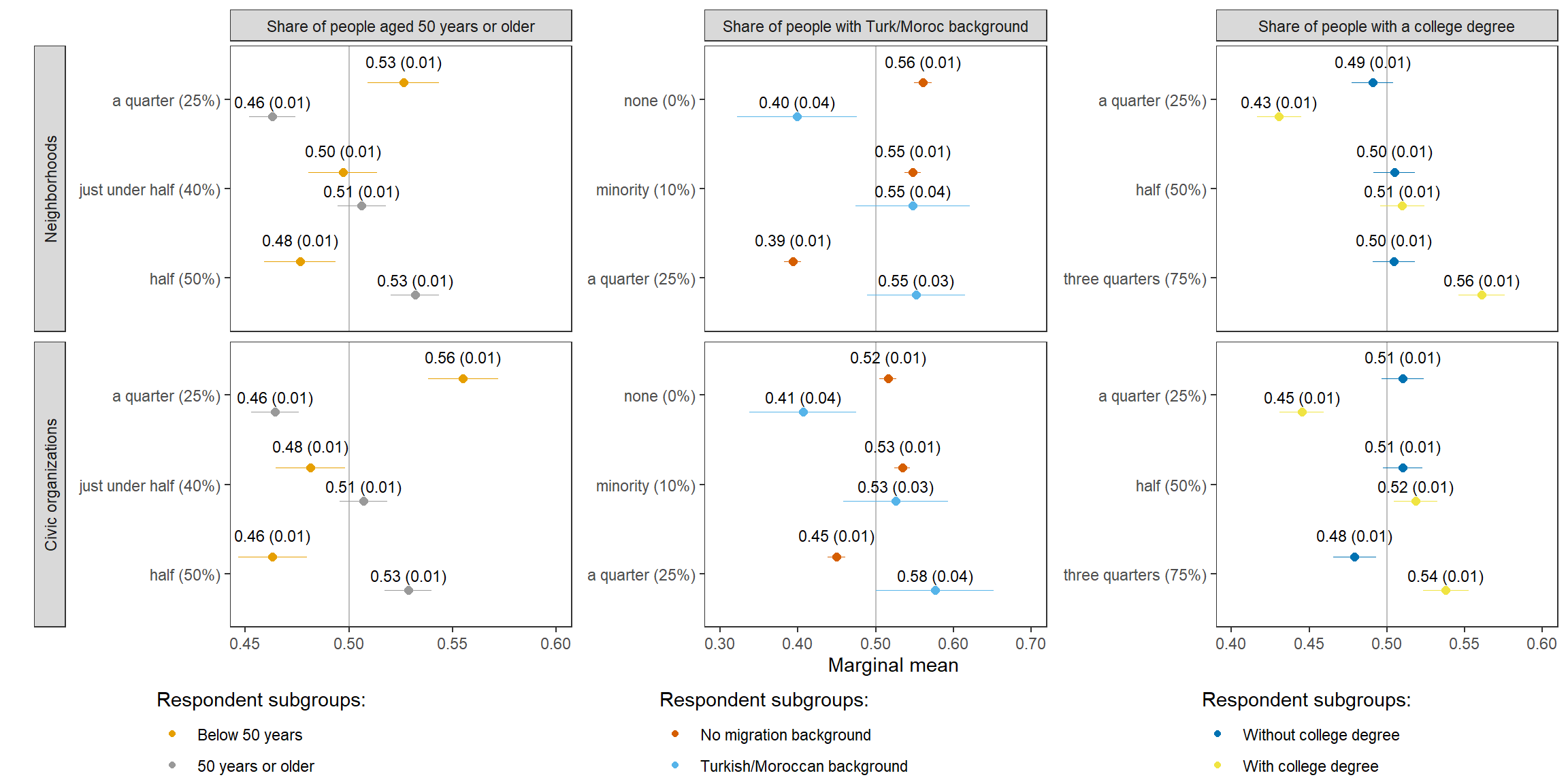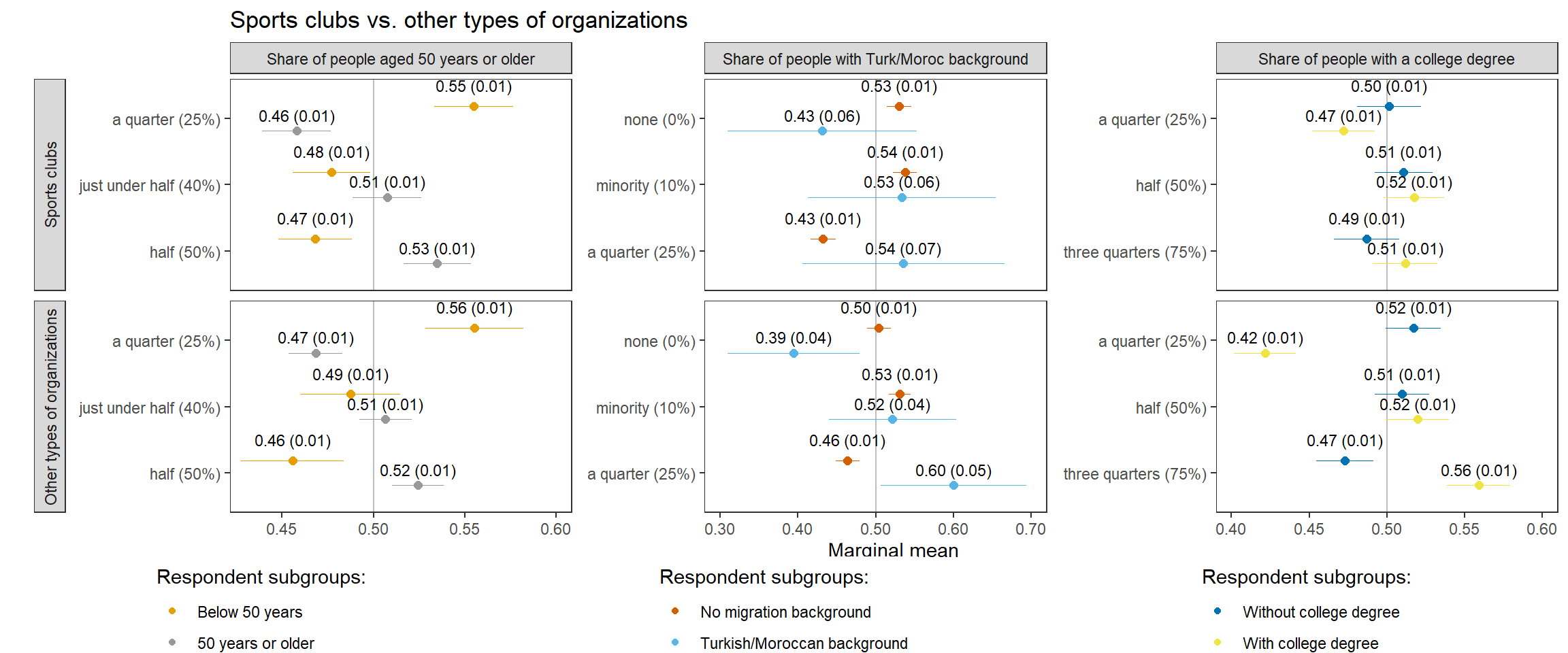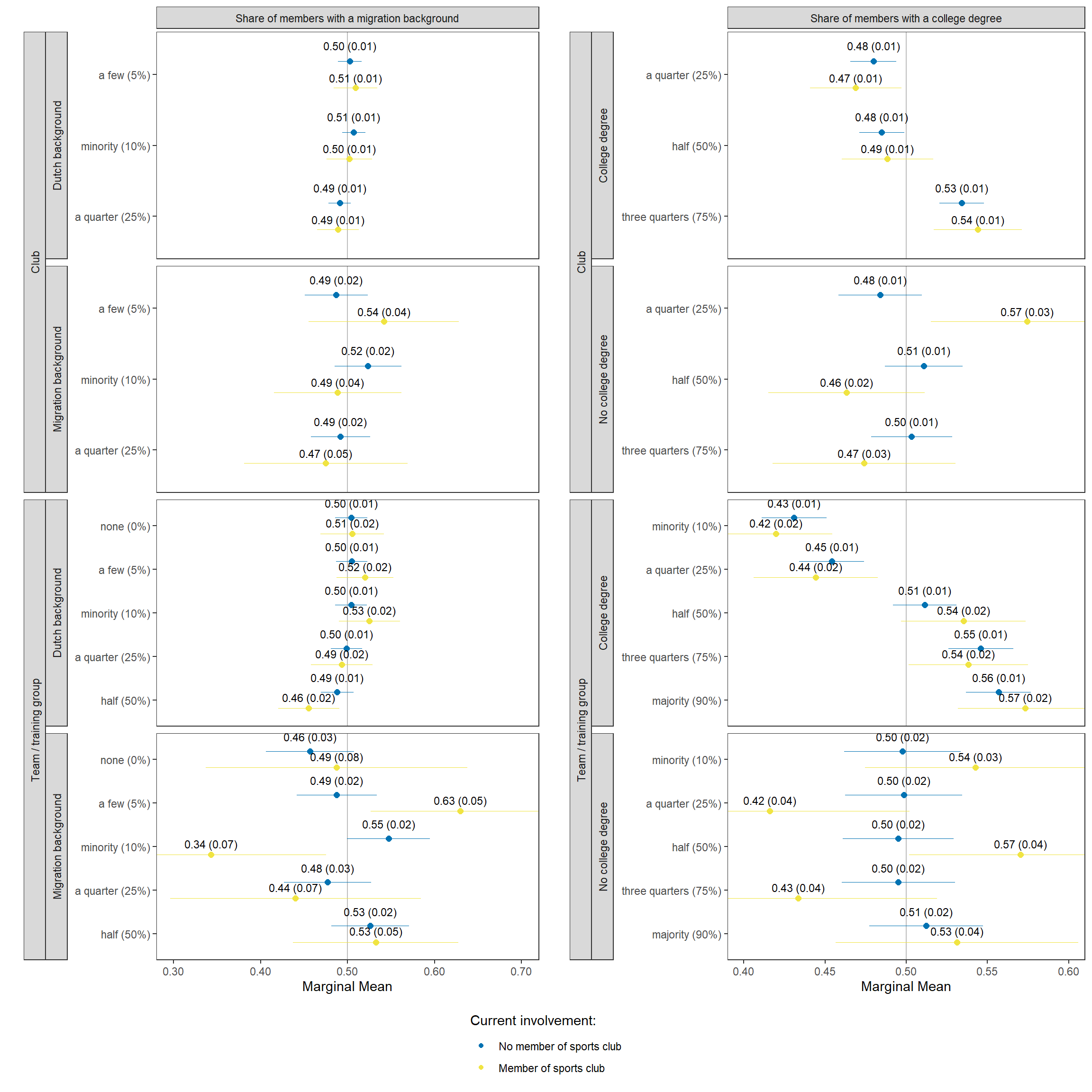 22 No migration background choice mm migrant_club club members with migration background: a few (5%) 0.51 0.01 82.18 0 0.49 0.52 Club Share of people with a migration background No migration background
